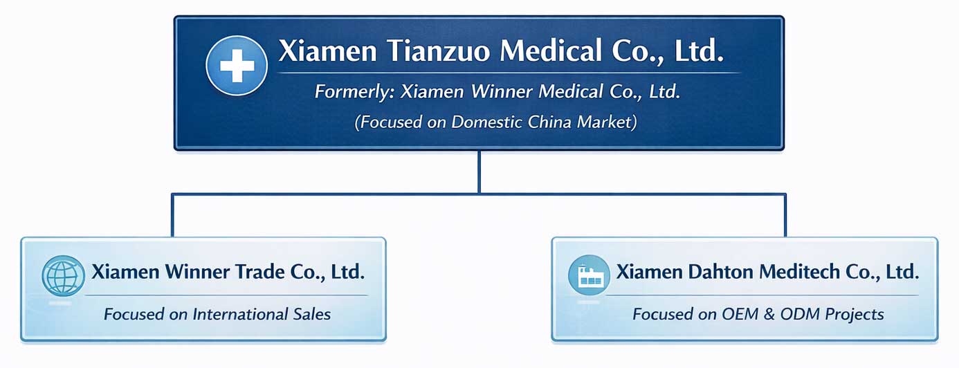 A empresa mudou de nome, passando de Xiamen Winner Medical Co., Ltd. para Xiamen Tianzuo Medical Co., Ltd.